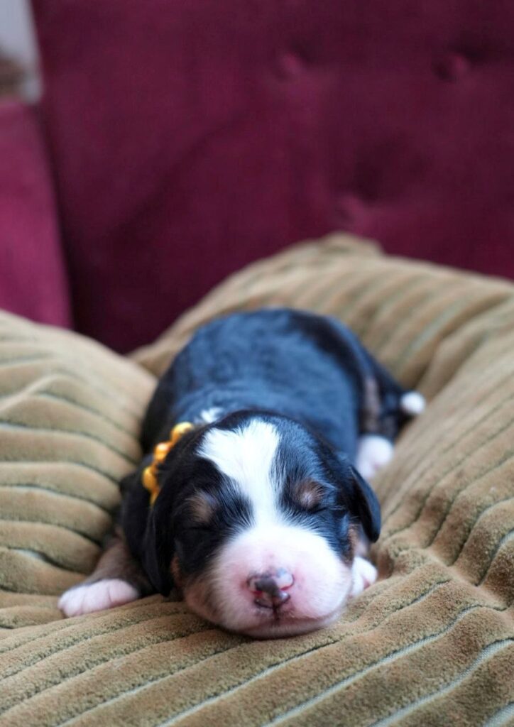 Violette, female Posted on December 8, 2025December 19, 2025 by doodlesfarmco_admin Violette, female, 2 weeks old Puppy Information Breed: Bernedoodle Generation: F1b Color: Classic Black Tri Gender: Female DOB: December 4, 2025 Go-Home Day: January 29-31, 2026 Price: $4,500 Status: Available PUPPY APPLICATION Violette, female, 2 weeks old Violette, female, 1 week old Violette, female, 2 days old