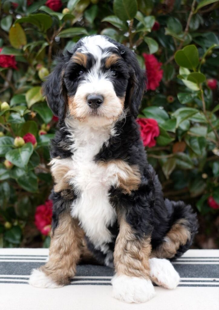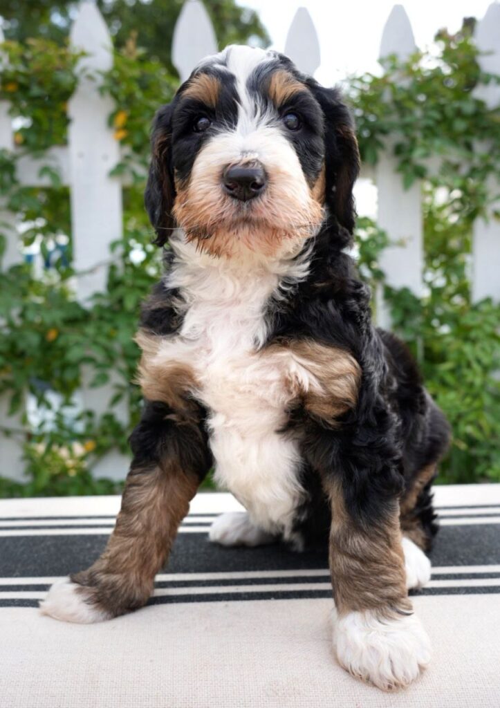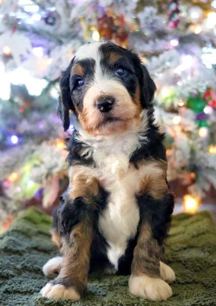 Violette, female Posted on December 8, 2025January 21, 2026 by doodlesfarmco_admin Violette, female, 7 weeks old Puppy Information Breed: Bernedoodle Generation: F1b Color: Classic Black Tri Gender: Female DOB: December 4, 2025 Go-Home Day: January 29-31, 2026 Price: $4,500 Status: Reserved for DoodlesFarmCo PUPPY APPLICATION Violette, female, 6 weeks old Violette, female, 5 weeks old Violette, female, 4 weeks old Violette, female, 2 weeks old Violette, female, 1 week old Violette, female, 2 days old
