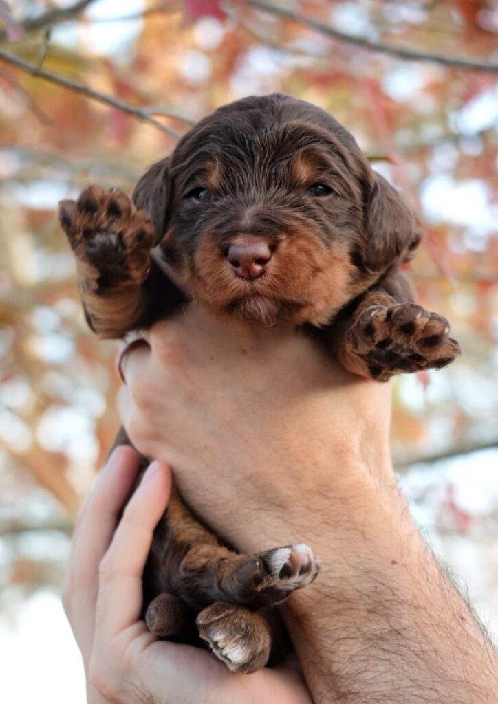 Peggy, female Posted on December 8, 2025December 19, 2025 by doodlesfarmco_admin Peggy, female, 2 weeks old Puppy Information Breed: Bernedoodle Generation: F1b Color: Brown Phantom Gender: Female DOB: December 4, 2025 Go-Home Day: January 29-31, 2026 Price: $4,500 Status: Available PUPPY APPLICATION Peggy, female, 2 weeks old Peggy, female, 1 week old Peggy, female, 2 days old