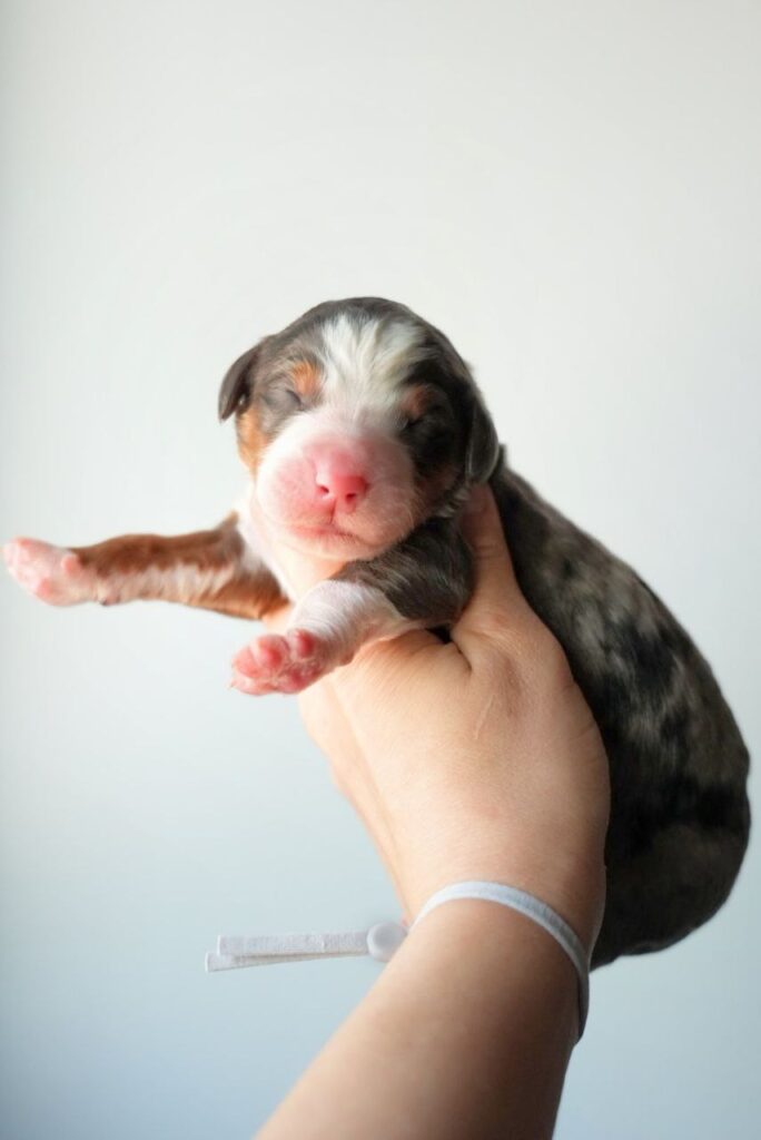 RIVER, female Posted on March 16, 2026 by doodlesfarmco_admin River, female, 2 days old Puppy Information Breed: Bernedoodle Generation: F1 Color: Merle Gender: Female DOB: March 14, 2026 Go-Home Day: May 9, 2026 Price: $4,250 Status: Available PUPPY APPLICATION